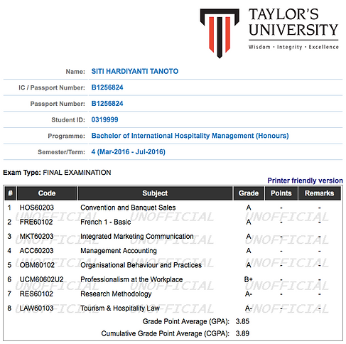 Official Academic Transcript